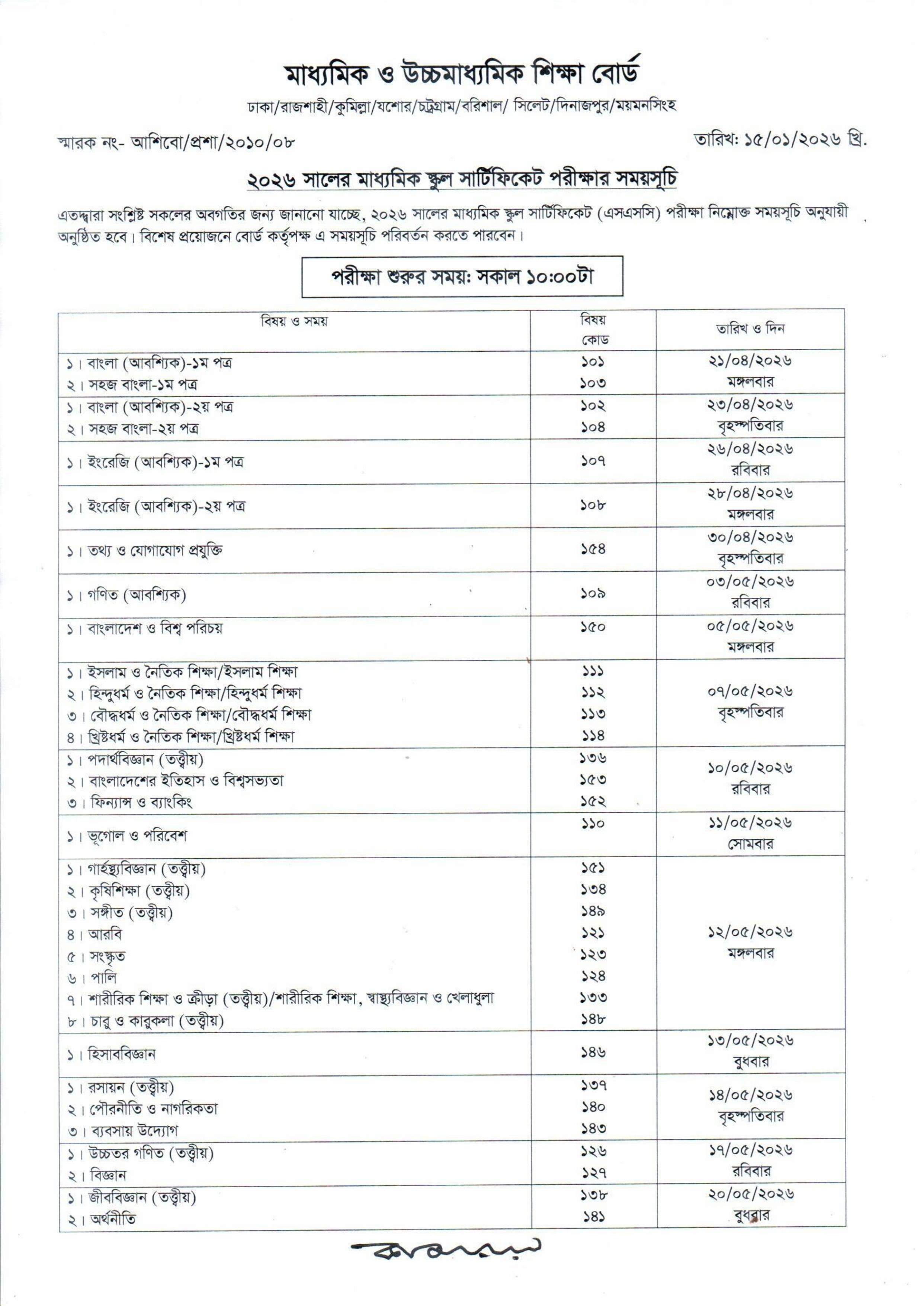 এসএসসি পরীক্ষা ২০২৬; রুটিন দেখুন এক ক্লিকে